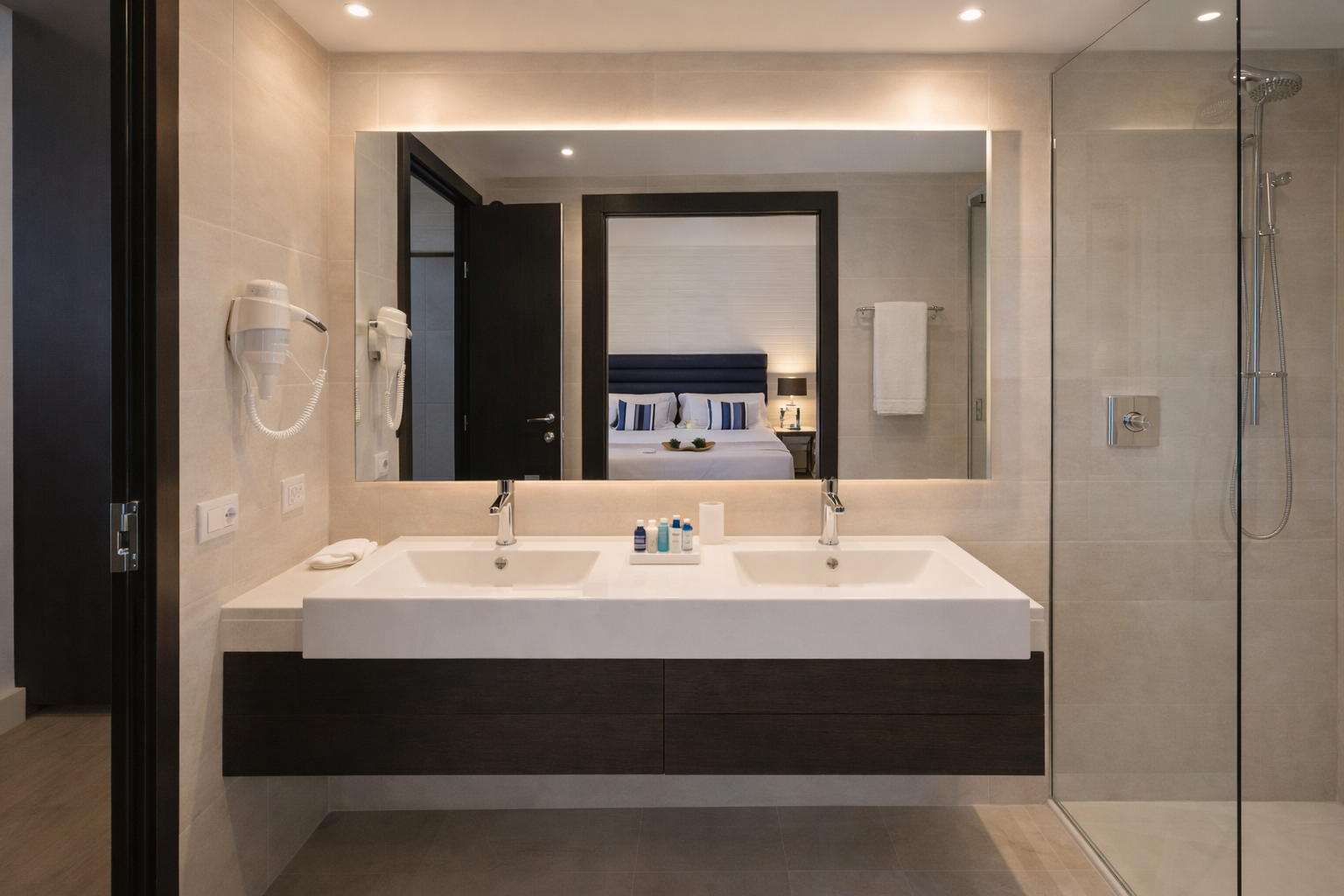 Step onto your private balcony and enjoy a slow morning with fresh air and open views, or unwind in the evening after a day between the sea and nearby villages. The room also includes a modern, well-appointed bathroom, offering everything you need for a relaxed and effortless stay.