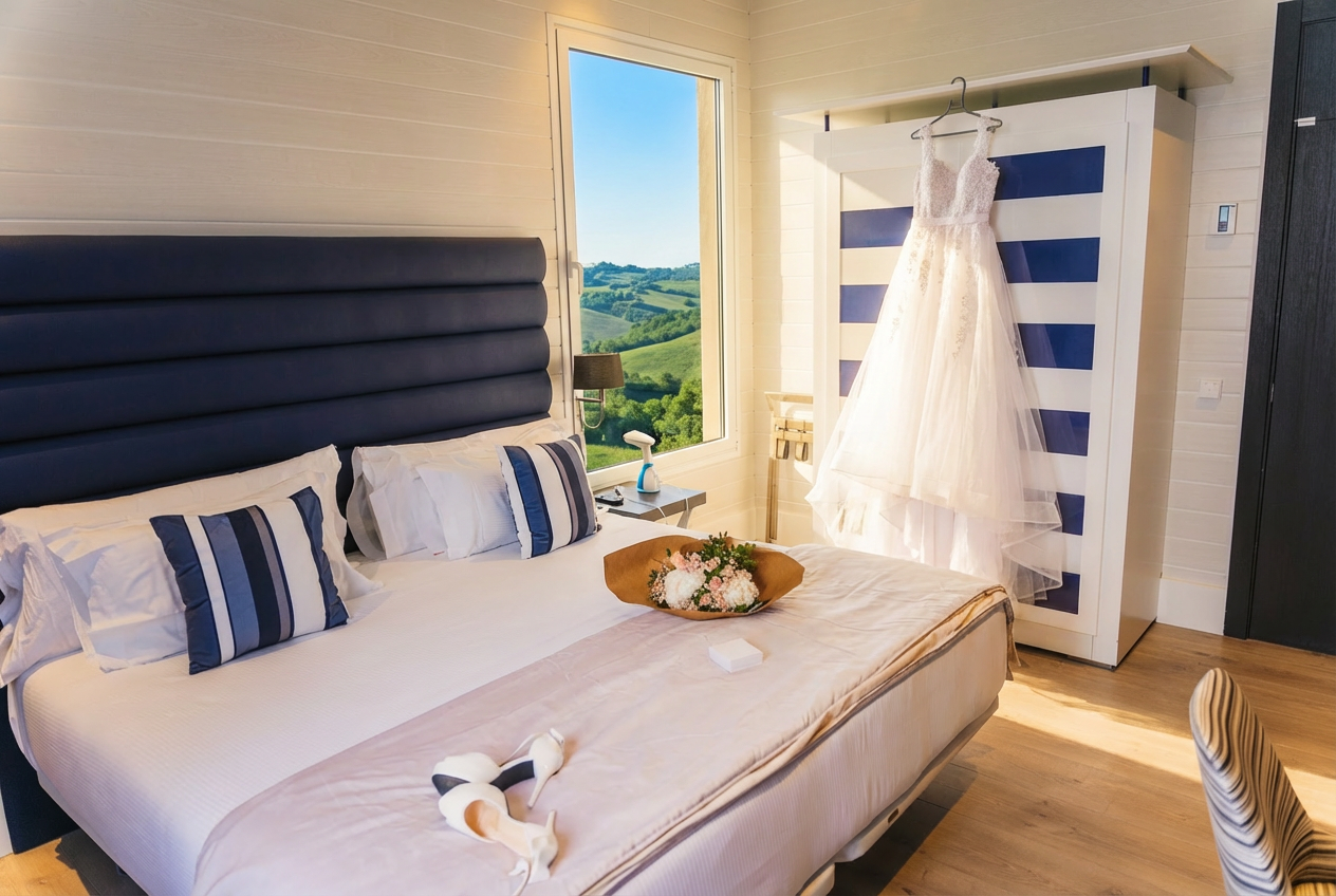 Wake up to peaceful hill views in our Deluxe Hill View Room — where comfort meets the quiet beauty of the surrounding landscape. Designed for guests who appreciate simplicity and atmosphere, this bright and spacious room features a comfortable king-size bed, soft natural tones, and large windows overlooking the rolling hills of Monte San Bartolo.
